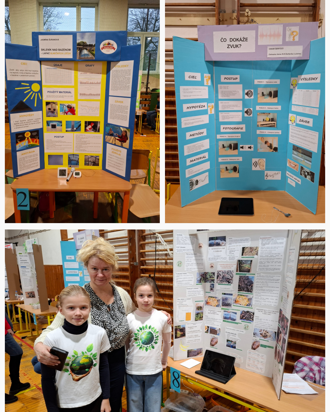 Ocenili sme aj bádateľské práce žiakov 3. ročníka: Zarka Zliechovcová III.A, Nelka Pápaiová III.A, Ella Pataiová III.C, Timko Matisko III.C.